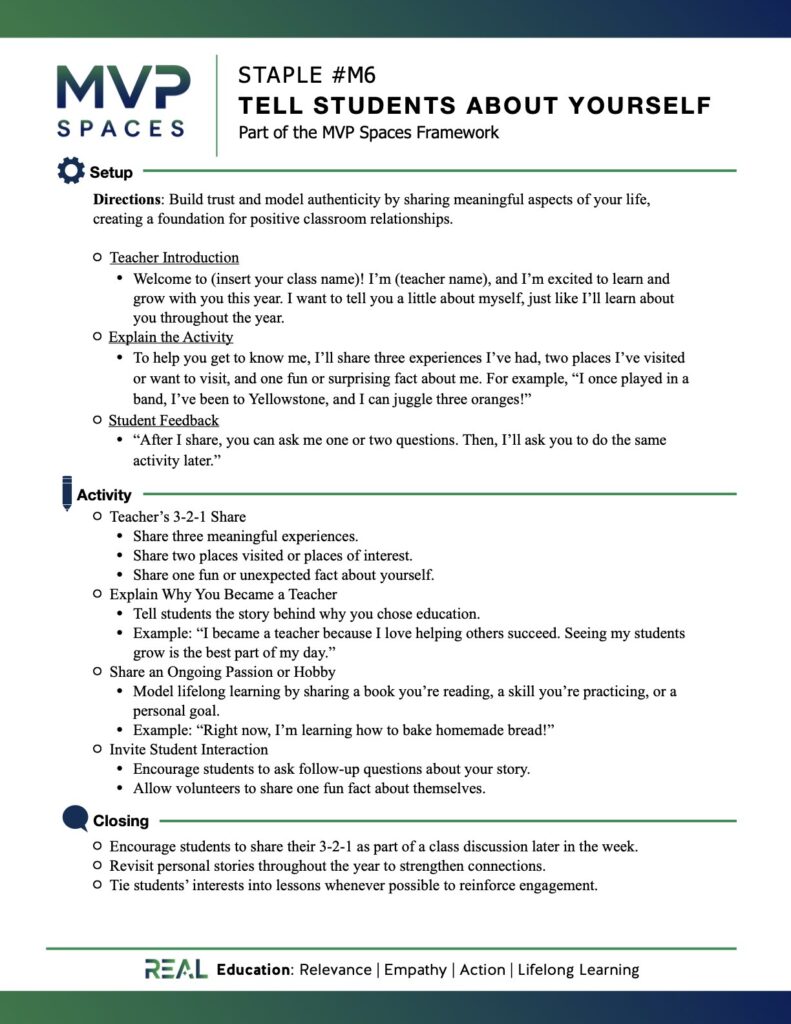 Sharing meaningful parts of your journey—such as what drives you or challenges you’ve overcome—adds depth to your relationship with students. It models vulnerability, resilience, and authenticity, encouraging a classroom culture where students feel safe to grow, take risks, and support one another.