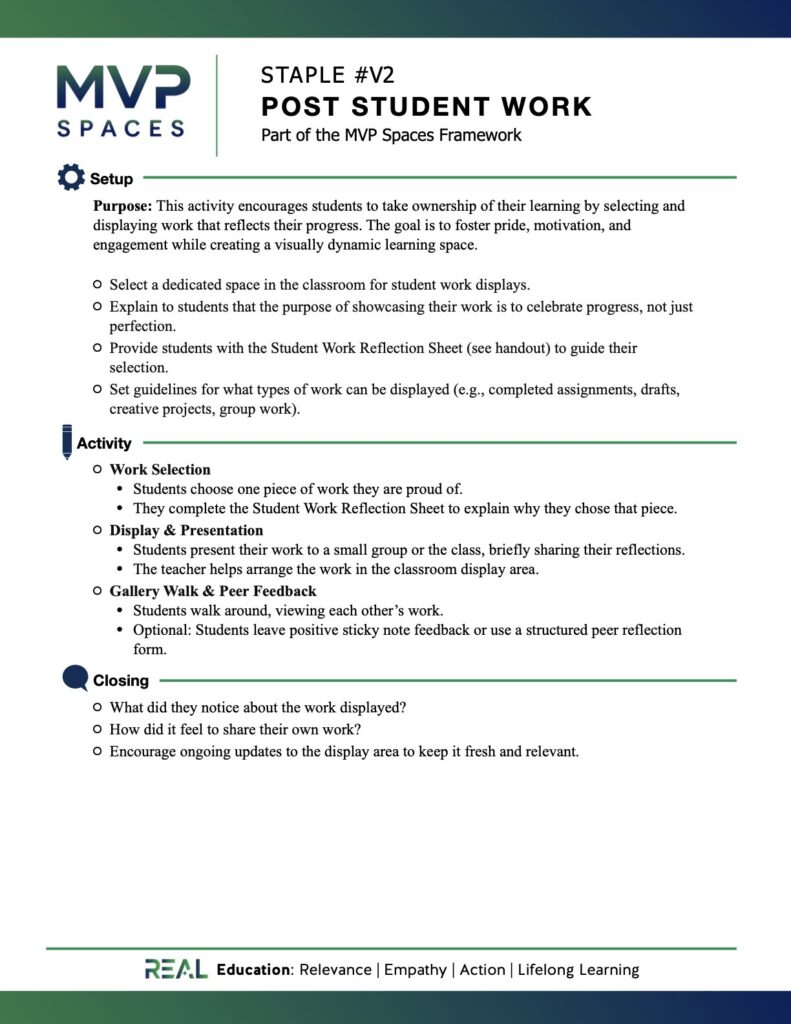 Displaying student work is more than decoration; it’s a strategy for engagement and reflection. When students see their efforts valued and made visible, it reinforces pride, deepens learning, and encourages them to take ownership of their growth. Creating these moments of visibility can transform your classroom into a space where learning is celebrated and student voice is honored.